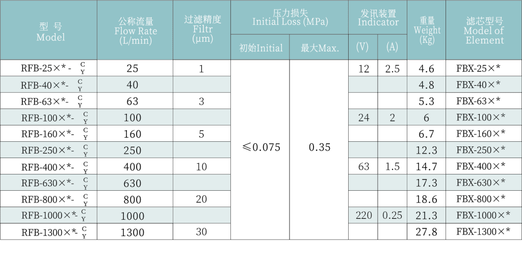 过滤器可安装可视或电气污染指示器,用于监测过滤器的污染情况。
