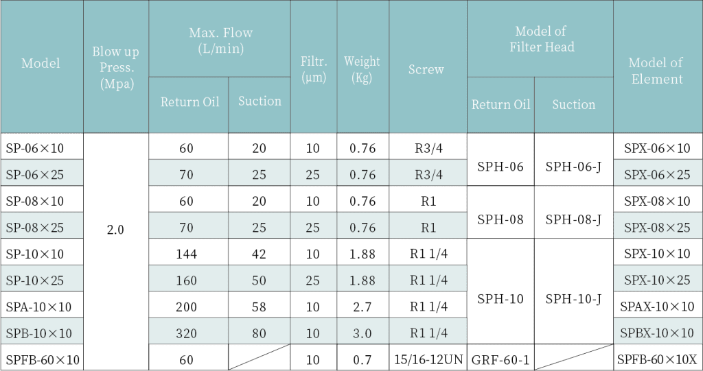 首页 Products 液压过滤器 回油过滤器 SP 系列旋装过滤器🔍首页 Products 液压过滤器 回油过滤器 SP 系列旋装过滤器SP 系列旋装过滤器SP 旋装管路滤油器,便于维护并确保液压油液清洁。滤芯更换快速,高效可靠,并可安全直列安装。 索取报价 分类: 回油过滤器 描述 规格参数结构类型:直列安装最大压力:0.7 MPa流量范围:20~320 L/min连接方式:螺纹工作温度:-20℃~+100℃滤芯材质:滤纸过滤精度:10-25 μm压力指示器选项:吸入端 -0.018 MPa,回油端 0.2 MPa旁通阀开启压力:0.25 MPa密封材料:NBR(丁腈橡胶)介质兼容性:适用于矿物油和合成油如需过滤其他介质,请联系我司销售人员。型号编码技术参数安装尺寸开始联系Contact Form product page姓名电话号码邮箱内容寻求报价 相关产品回油过滤器RFB 系列磁性回油过滤器(含止回阀) 阅读更多 回油过滤器XL-FB160 系列回油过滤器 阅读更多 回油过滤器XNL 系列油箱安装回油过滤器 阅读更多 回油过滤器RFA 系列磁性回油过滤器(带止回阀) 阅读更多 回油过滤器ZU-A 系列回油过滤器 阅读更多 回油过滤器RF 系列油箱安装回油过滤器 阅读更多