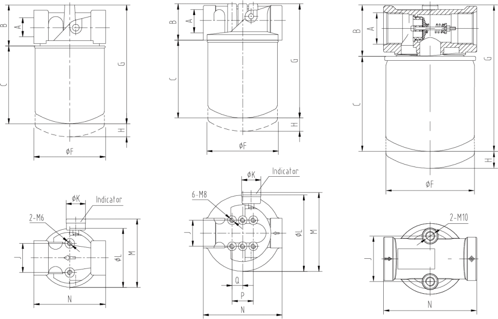 规格参数结构类型:直列安装最大压力:0.7 MPa流量范围:20~320 L/min连接方式:螺纹工作温度:-20℃~+100℃滤芯材质:滤纸过滤精度:10-25 μm压力指示器选项:吸入端 -0.018 MPa,回油端 0.2 MPa旁通阀开启压力:0.25 MPa密封材料:NBR(丁腈橡胶)介质兼容性:适用于矿物油和合成油如需过滤其他介质,请联系我司销售人员。型号编码技术参数安装尺寸