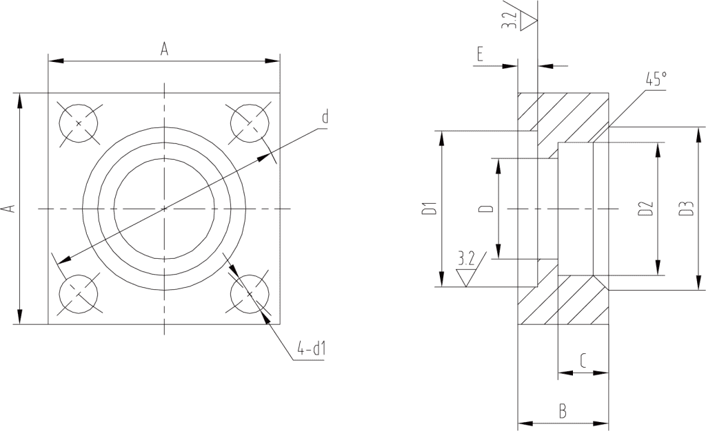 连接法兰,请按以下尺寸生产产品。